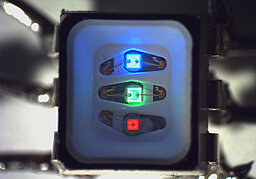 Large area displays composed of LED panels are being used for advertisement and announcements, for example in sport arenas. There can be up to millions of RGB-LEDs in one display. Each RGB-LED contains a blue, a green and a red emitting semiconductor chip. By steering the currents dedicated to each of these 3 chips, a large variety of colors can be achieved my mixing the emission spectra. Thermally stable silicones are used as encapsulants for the chips in the package.