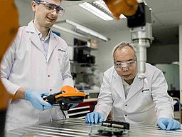 When it comes to multicomponent parts, we have various means of simulating plasma-supported adhesive strength. For example, with induction heating we can produce samples made from plastic-metal or rubber-metal compounds. The same laboratory is also available for testing adhesive compounds according to customer specifications.