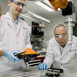 S'il en va de pièces à composants multiples, nous avons différents moyens de simuler l'adhérence supportée par le plasma. En utilisant le chauffage par induction, nous pouvons par exemple fabriquer des échantillons en métal et plastique ou des composites en métal et caoutchouc. Le même laboratoire est également disponible pour tester les colles composites selon les spécifications du client.