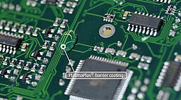 "These functional surfaces have been used in the plastics industry for a very long time. For example, barrier coatings are applied in the packaging industry to protect food. Likewise, adhesion-promoting functional coatings can be applied for 2K injection molding. In electronics production, too, the focus is increasingly shifting to coating processes using PlasmaPlus," continues Coenen. Coating as a protective or insulation layer is of great interest to many electronics manufacturers because it protects the assembly against possible quality problems or damages that may occur in the later product lifetime. Particularly in the case of complex assemblies with a high degree of miniaturization and packing density, coating by Openair-Plasma technology in conjunction with PlasmaPlus is an efficient process for treating entire assemblies or individually selected components.