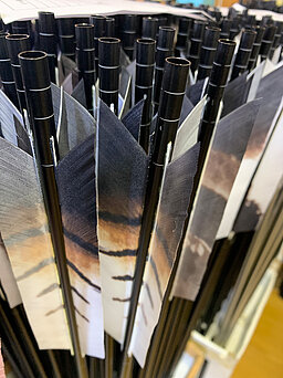 The arrows for the traditional Japanese martial art of Kyudo, which has existed since the 16th century, are still made today according to traditional specifications - this requires the highest precision. The Japanese company Feather Craft with a market share of 50 percent, founded by descendants of a traditional craftsman, has changed the material of the sports equipment from bamboo to aluminum. Fitting the aluminum shaft with the real feathers that ensure the sports equipment maintains the exact trajectory presented special challenges for production: The feathers must be placed at the end of the arrow with the utmost precision according to the specifications of the old craftsmanship and must adhere reliably to the metal. The sports equipment manufacturer found the optimal solution in Plasmatreat's Openair-Plasma technology.