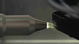 The sequence defined by the customer requires the production staff to remove the connectors strips from a tray and place them individually on a rotary table which transports the strips into the production cell. There, the connectors strips are picked up by the robot and held in the plasma jet with the side of the component to be processed. After processing the component, it is placed back on the rotary table and rotated out of the production cell. The cycle time is about 15 seconds per component. "Instead of the employee at the machine, we can integrate another robot to take care of the filling of the system. The same applies to the rotary table, which can be exchanged for a belt system or similar. It is also possible to move the jet system, depending on whether this is necessary for a production process. This enables us to offer highly flexible Openair-Plasma Systems that are perfectly tailored to customer requirements," Schüßler continues.
