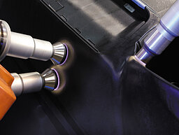 Les systèmes robotisés de Plasmatreat sont équipées de torches rotatives brevetées pour le traitement par plasma (activation, nettoyage), pour le revêtement plasma et pour le processus de durcissement de surface de composants avec des dimensions et géométries les plus variées. Cette technique est intégrée en ligne dans le processus de production, sans avoir besoin de systèmes de chambre. Le composant reste dans la ligne de production et peut-être traitée immédiatement après le traitement au plasma. Cela simplifie et accélère le processus de production, ce qui rend particulièrement plus rentable.