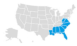 LA, MS, AL, GA, FL, TN, SC, NC