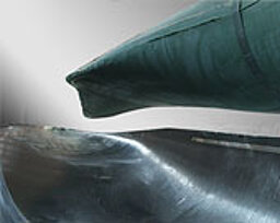 En général, les pales du rotor sont fabriquées avec la construction mixte de CFRP et GFRP en demi-coquilles dans le processus de laminage. L'application d'une couche de séparation dans le moule est indispensable pour qu´ultérieurement, le composant fini puisse être retiré du moule. Classiquement, ceci est réalisé avec des agents chimiques de démoulage et doit être réappliqué de nouveau après chaque démoulage. Dans le processus de démoulage, des traces de cette couche de séparation sont transmises à l'élément. Ceux-ci doivent être retirés sans laisser de résidus avant d´être peint.
