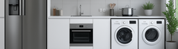 Les "Produits blancs" comme les machines à laver, cuisinières, lave-vaisselle, etc sont fabriqués en grande quantité et sont généralement soumis à un court cycle de vie des produits. D’autre part, les exigences sont élevées en ce qui concerne les matériaux assemblés devant être stables à long terme et la rentabilité des processus. Par conséquent, une plus grande attention est portée sur le collage lors de la fabrication, dans le but d'atteindre un assemblage de matériaux durable, simple et rentable. En outre, la stabilité de l'impression décorative à long terme est importante, surtout compte tenu de l'usure sur les appareils causés par l'humidité et les alcalis.