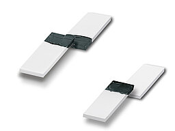 - Sans traitement PT-Bond, l'adhésif se rompt. Dans ce cas, l'adhésif reste sur l'une des faces des deux substrats, voir image de droite.